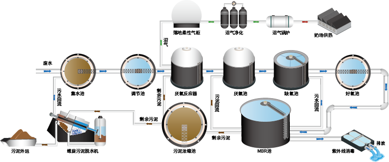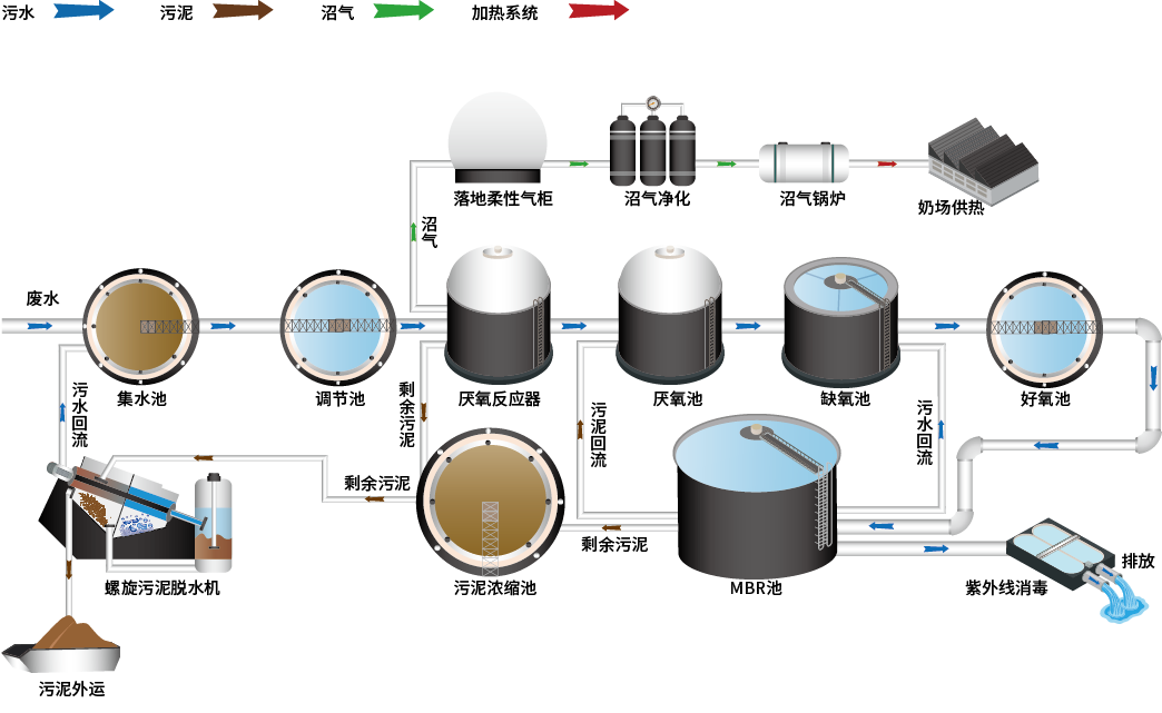 奶制品污水主要含有大量可溶性有機物,包括糖類、淀粉、蛋白質、脂肪酸、污水可生化性好,且不含有毒有害物質和大顆粒懸浮物質,污水呈乳白色,屬中高濃度污水。